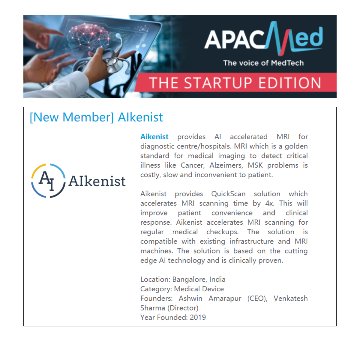 Aikenist unveiled Quickscan solution in Nasscom LHIF digital event. Quickscan accelerates MRI scan for regular checkups of Cancer, Alzheimer’s, Spinal and Knee problems and make it accessible to people.
